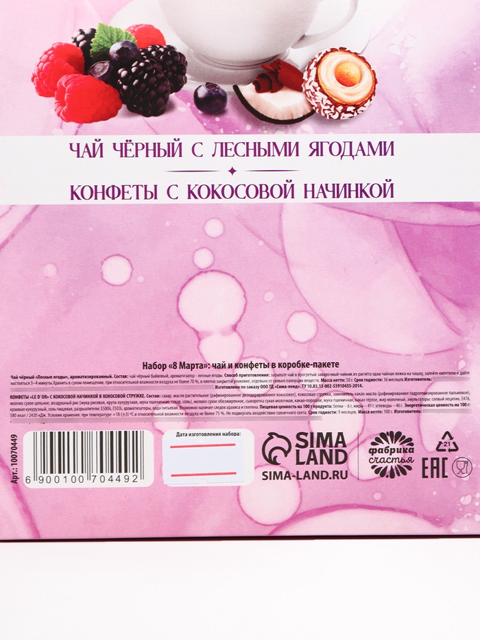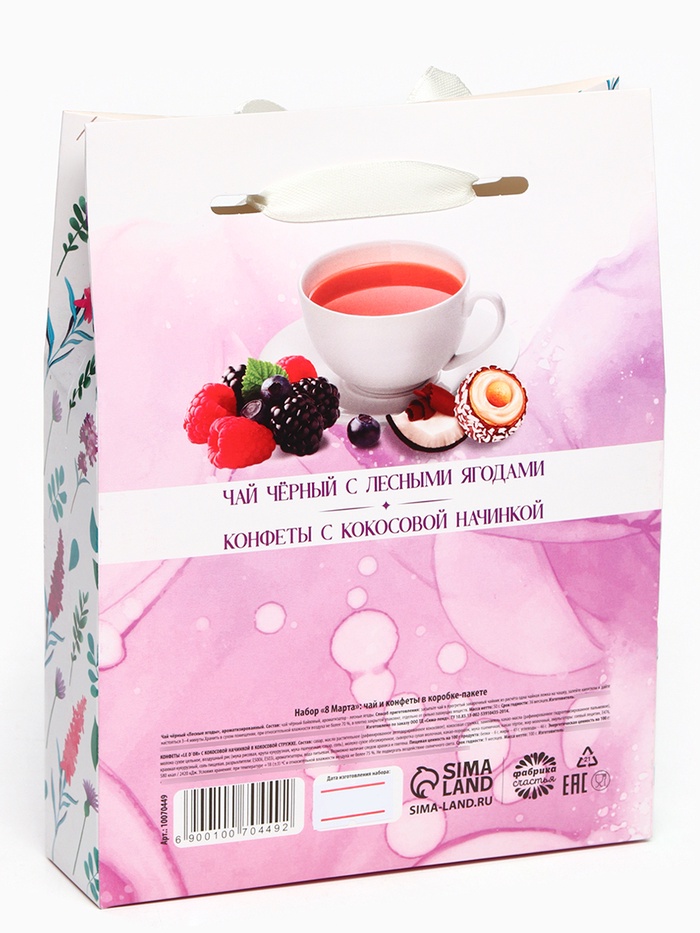 Подарочный набор «8 марта»: чай чёрный с лесными ягодами 50 г., шоколадные конфеты 100 г. 7 фото