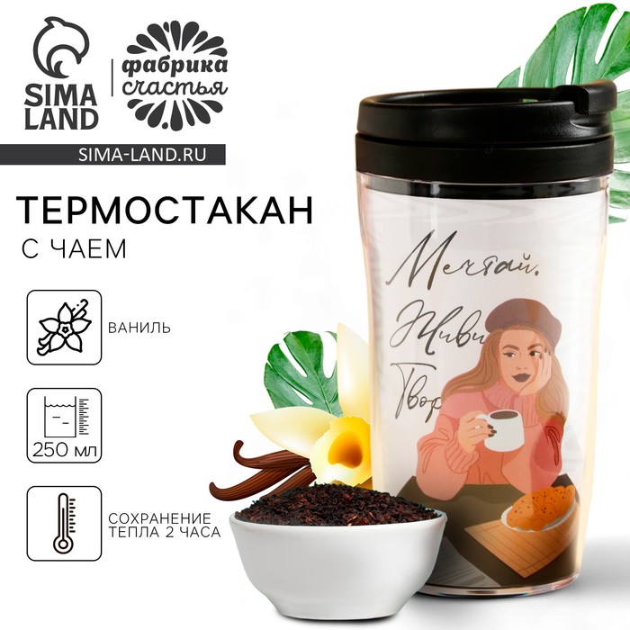 Чай подарочный «Мечтай, живи, твори» с ванилью и карамелью в термостакане 250 мл., 20 г МИКС 5 фото