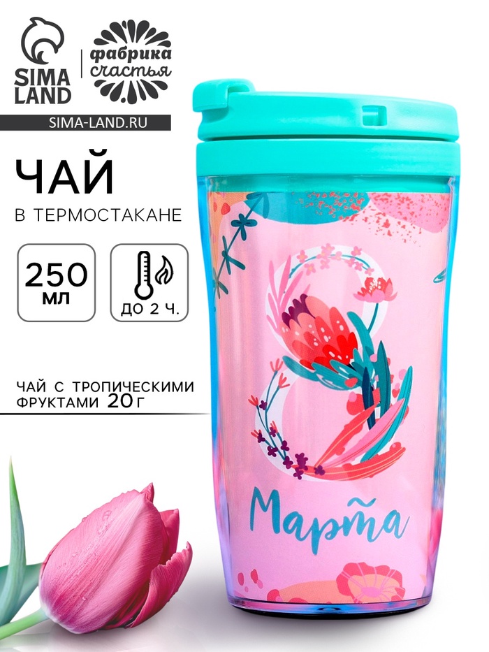 Чай подарочный «8 Марта» с тропическими фруктами в термостакане, 20 г 7 фото