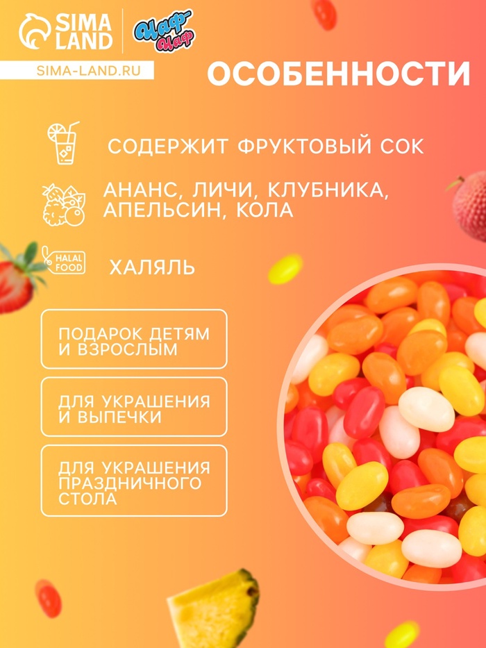 Мармелад жевательный «Бобы» с фруктово-ягодным вкусом, 1 кг 3 фото