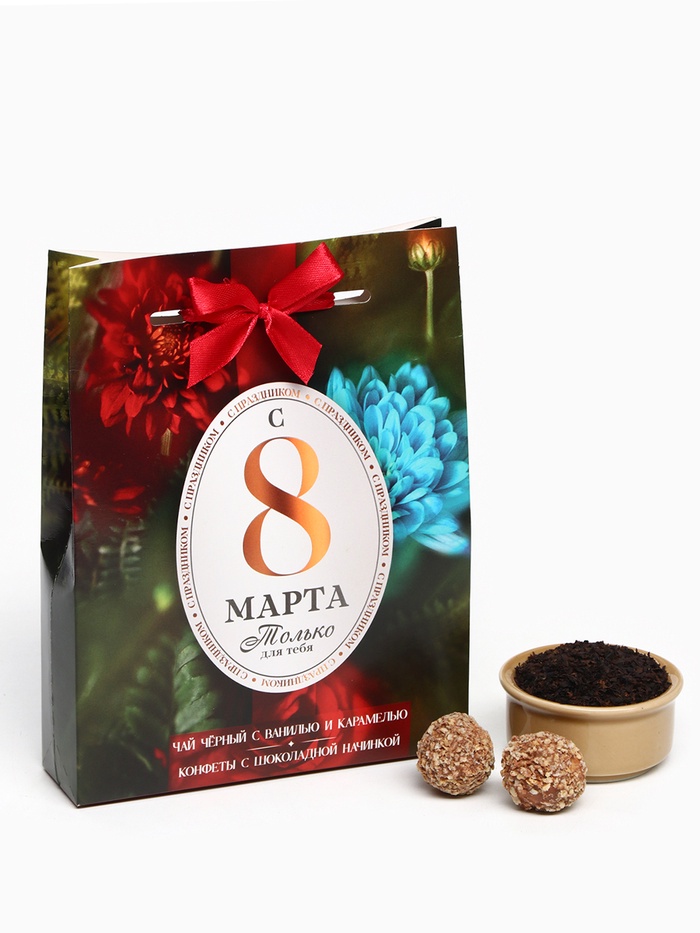 Подарочный набор «8 марта», чай 50 г, конфеты 100 г 8 фото