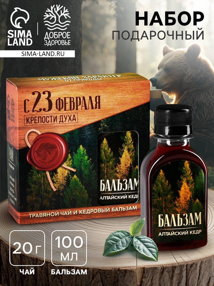 Подарочный набор «С 23 февраля»: чай травяной 20 г, кедровый бальзам 100 мл. 6 фото