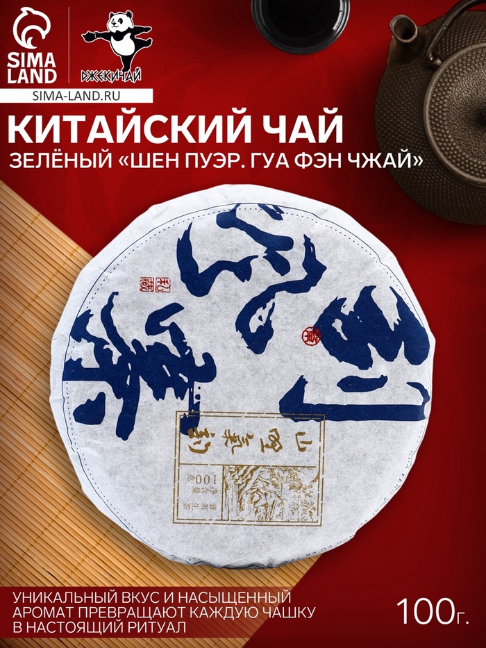 Чай зелёный китайский выдержанный «Шен Пуэр. Гуа Фэн Чжай», Юньнань, 2022 г, блин, 100 г 2 фото