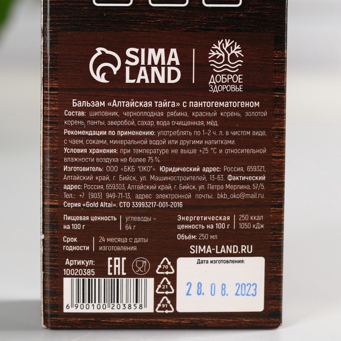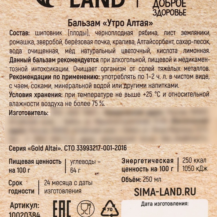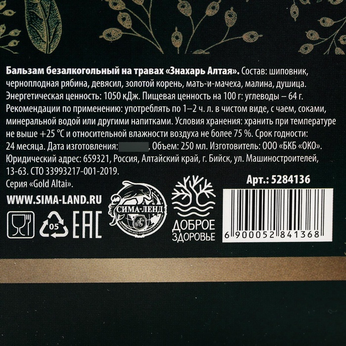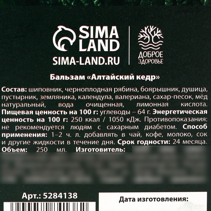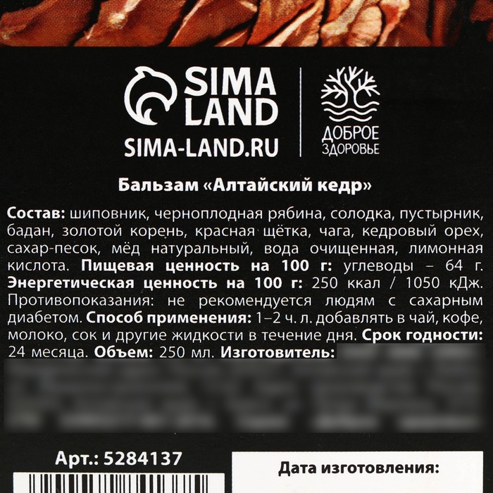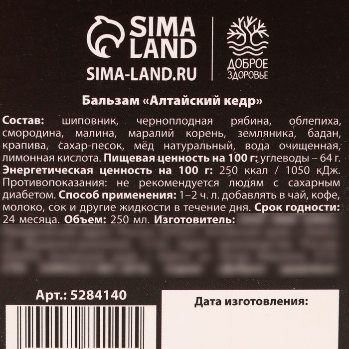 Бальзам безалкогольный «С кедровым орехом», 250 мл 7 фото
