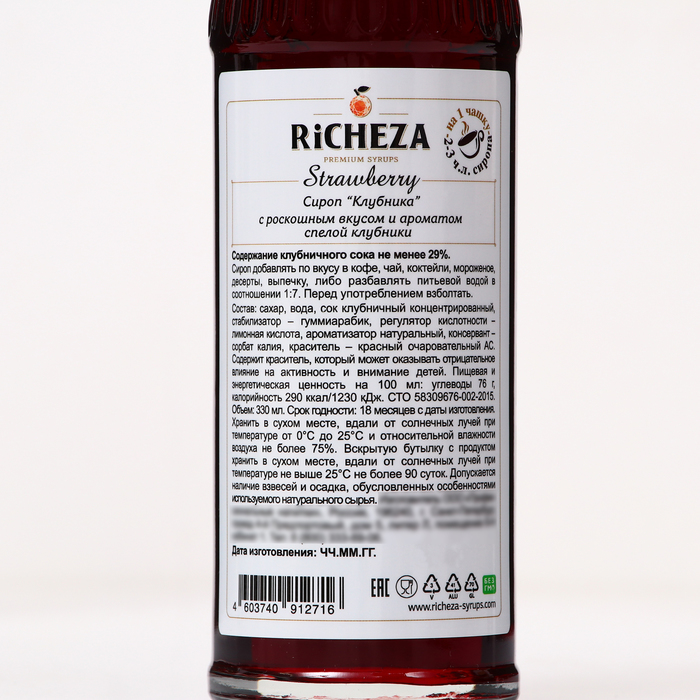 Сироп RICHEZA «Клубника» 0.33 л 2 фото