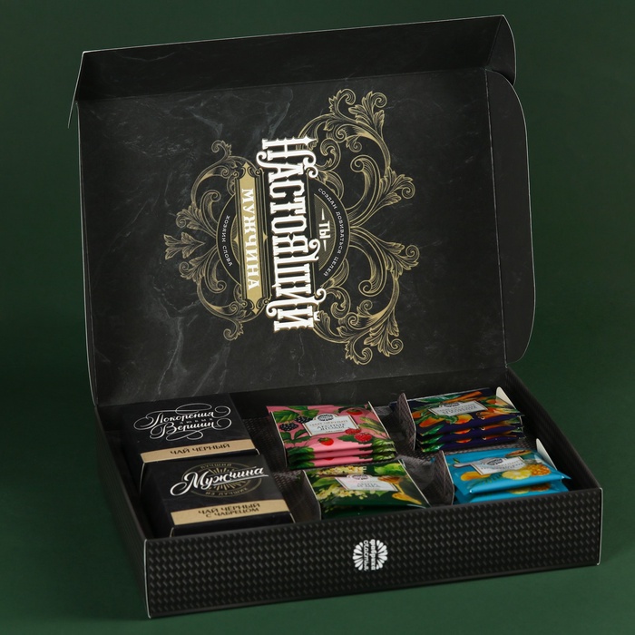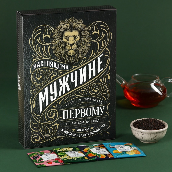 Чай подарочный «Настоящему мужчине», весовой чай 40 г (2 шт. × 20 г)., чай в пакетиках 21.6 (12 шт. × 1.8 г). 9 фото