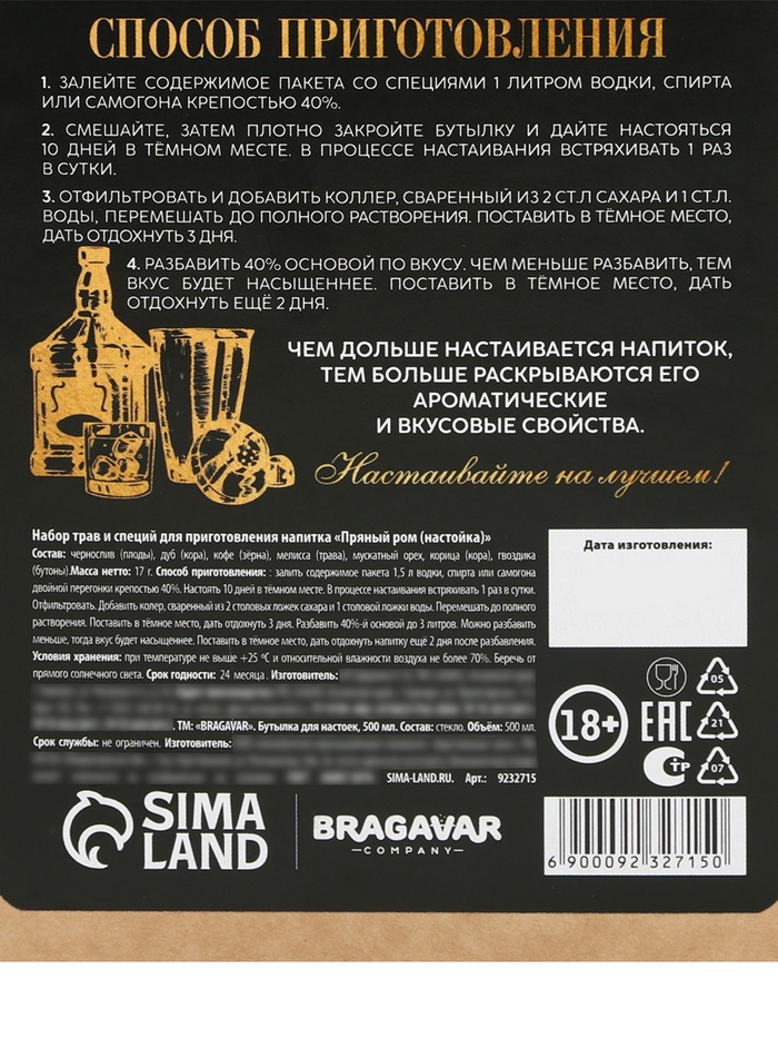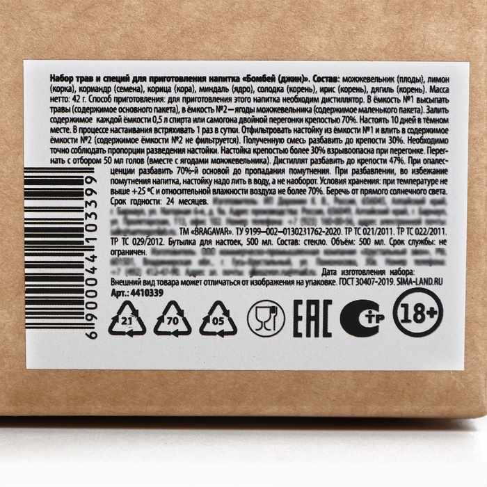 Подарочный набор для приготовления алкоголя «Джин», набор трав и специй, бутылка 10 фото