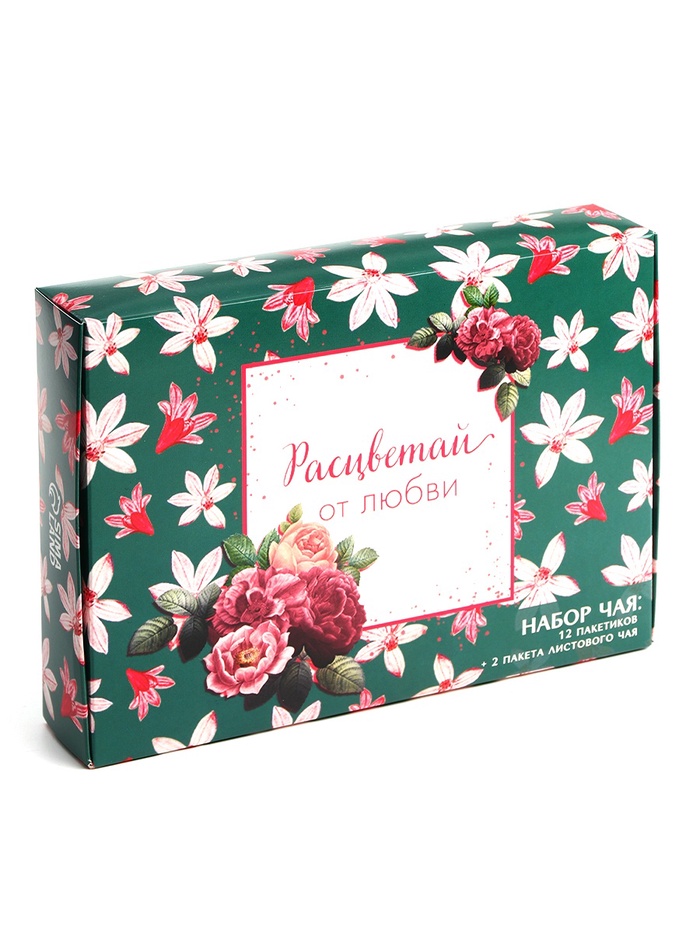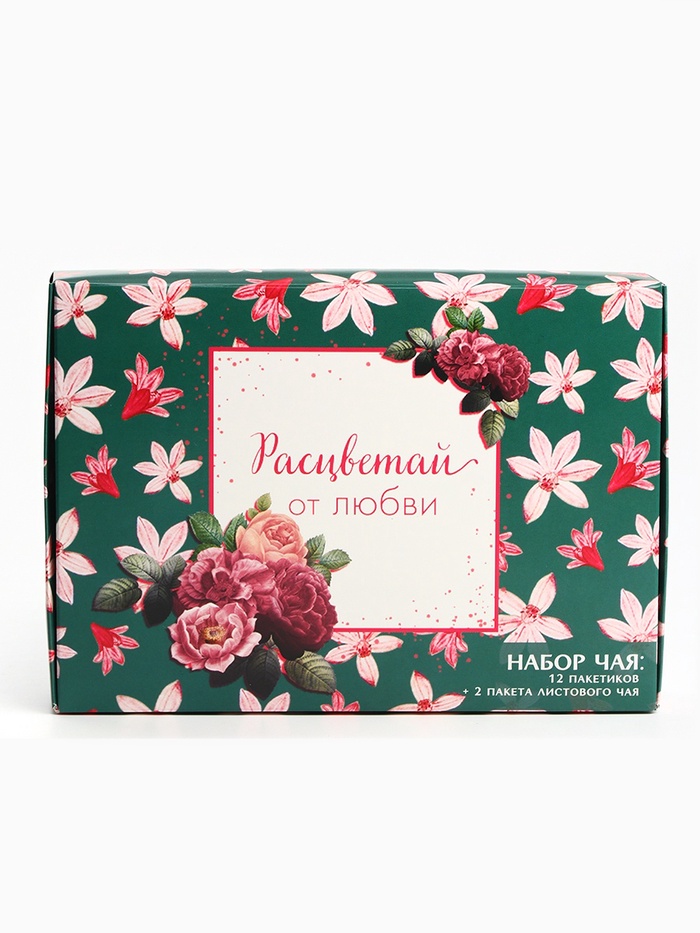 Чай подарочный «Расцветай от любви», весовой чай 40 г (2 шт. × 20 г)., чай в пакетиках 21.6 (12 шт. × 1.8 г). 10 фото
