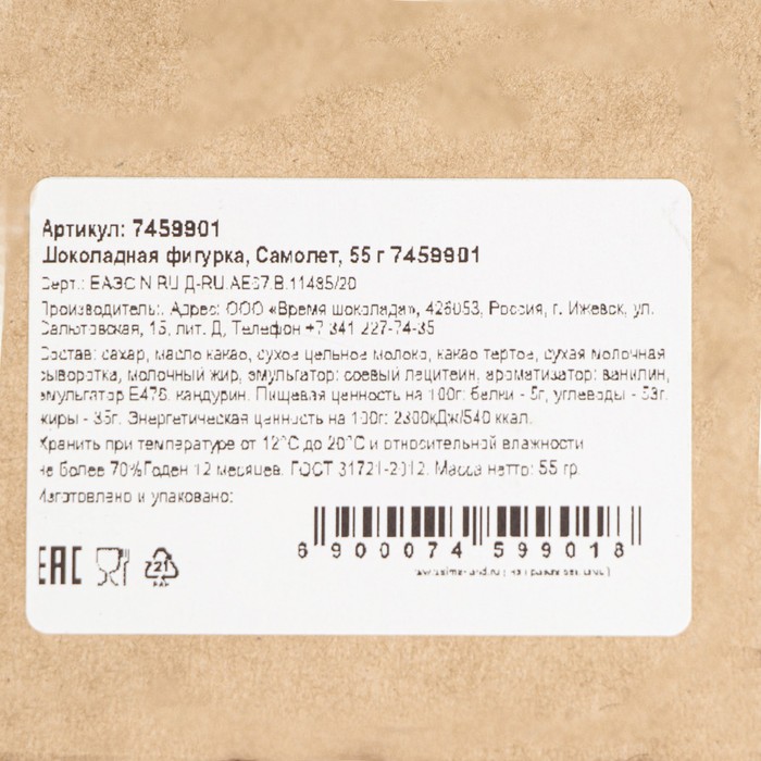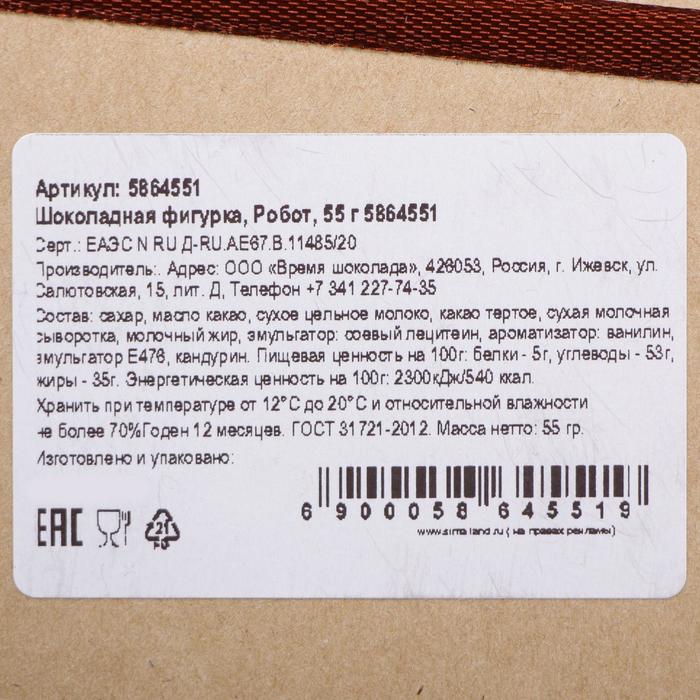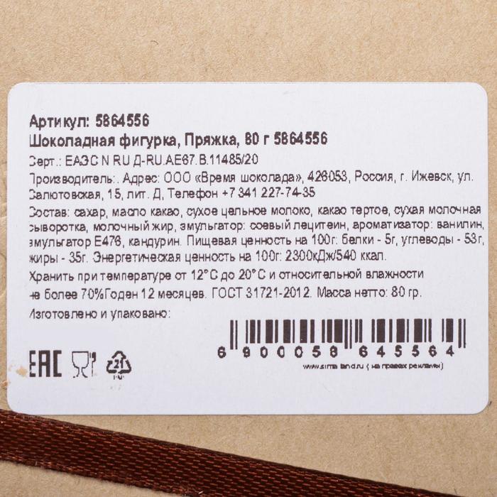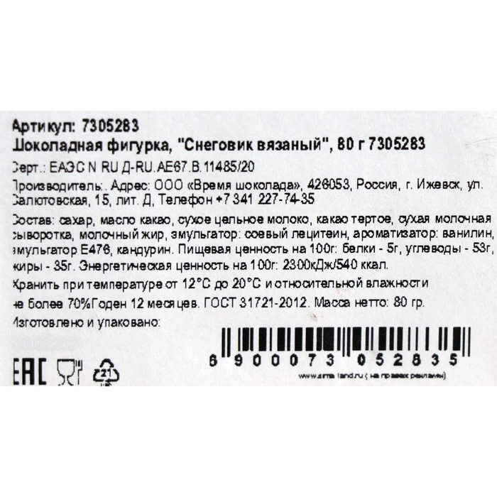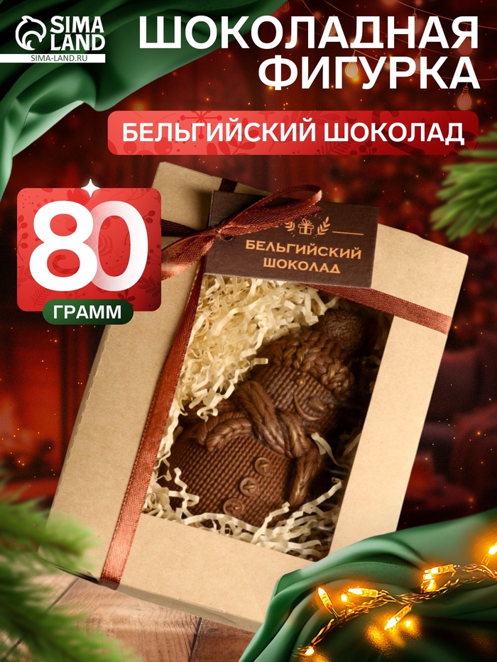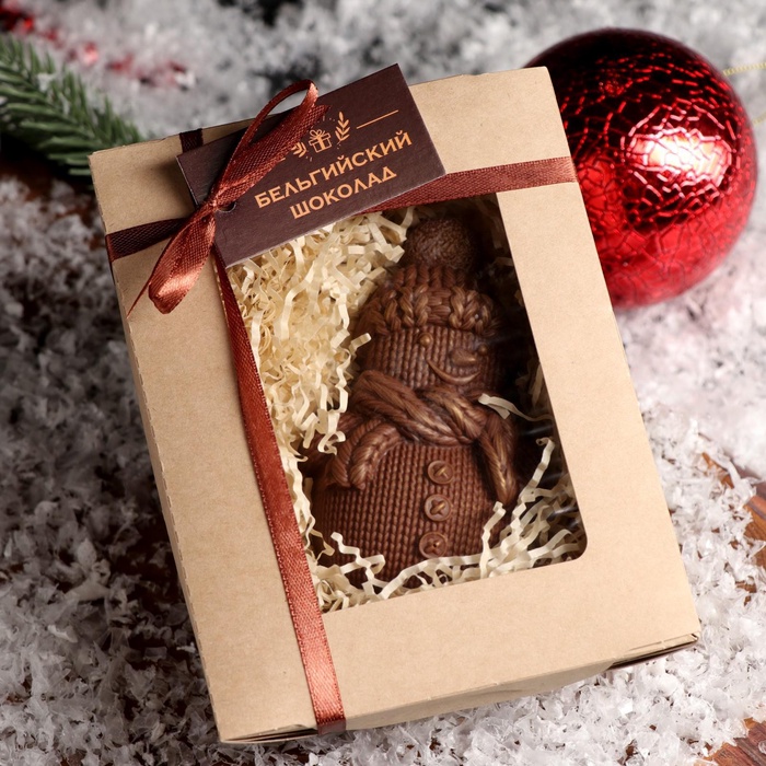 Шоколадная фигурка «Снеговик вязаный», бельгийский шоколад, 80 г 3 фото
