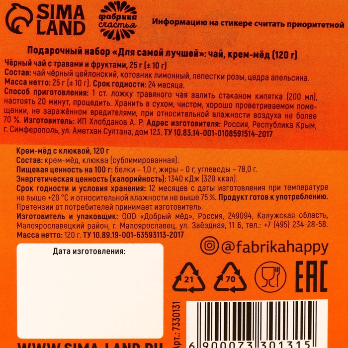 Подарочный набор «Счастья в каждом моменте»: чай, крем-мед (120 г) 8 фото