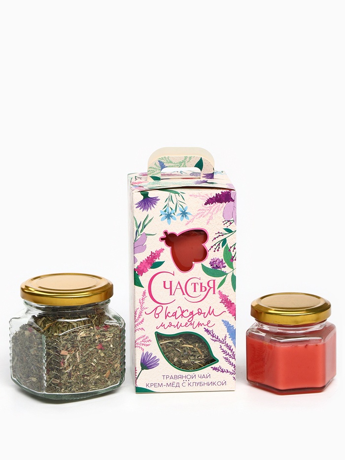 Подарочный набор «8 Марта»: чай травяной ягодный, крем-мед с клубникой 120 г. 5 фото