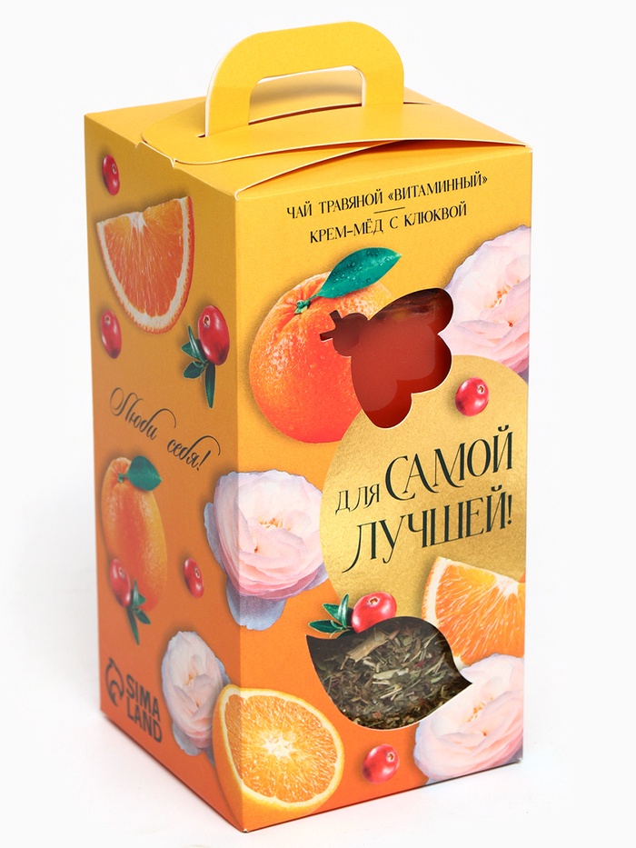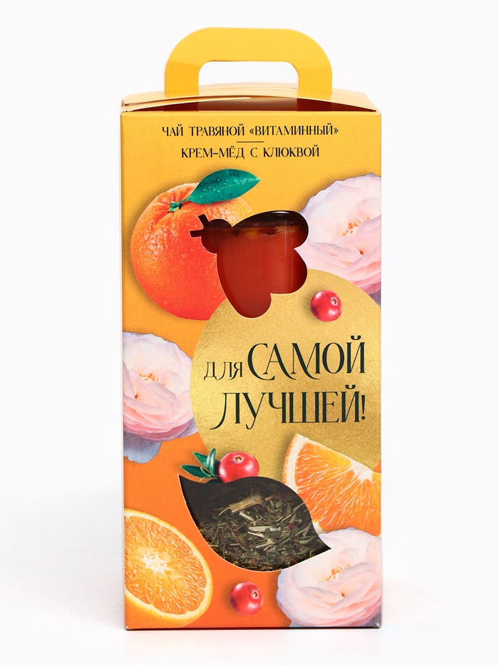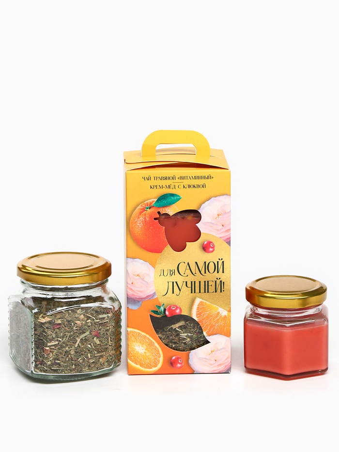 Подарочный набор «Для самой лучшей»: черный чай с травами и фруктами 25 г, крем-мед с клюквой 120 г. 10 фото