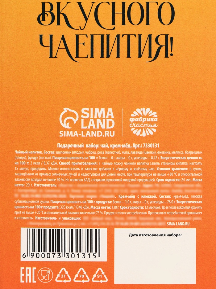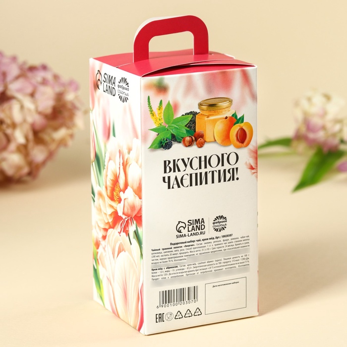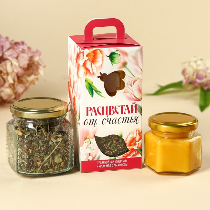 Подарочный набор «Расцветай от счастья»: чай травяной 25 г., крем-мёд с абрикосом 120 г. 7 фото