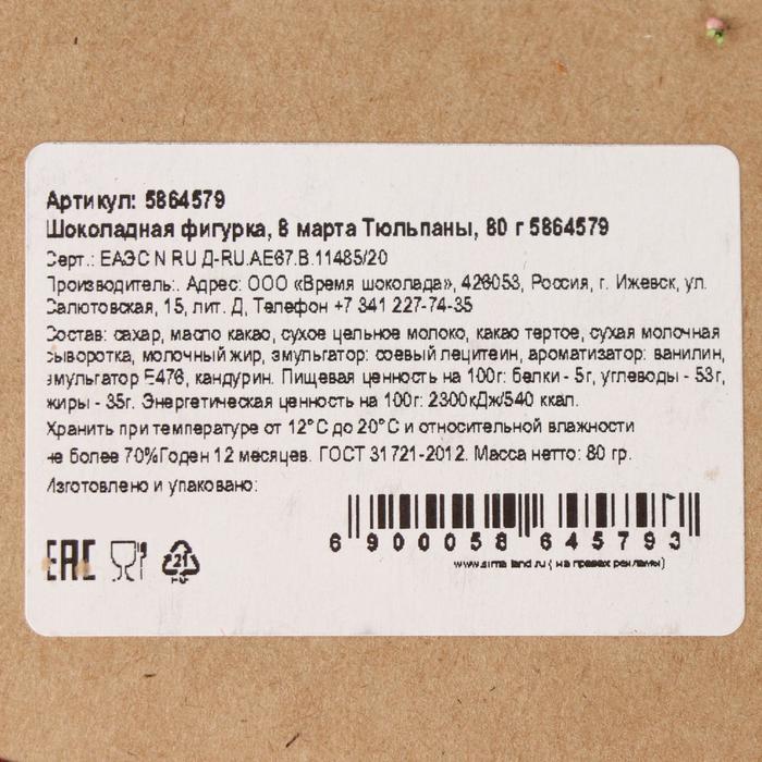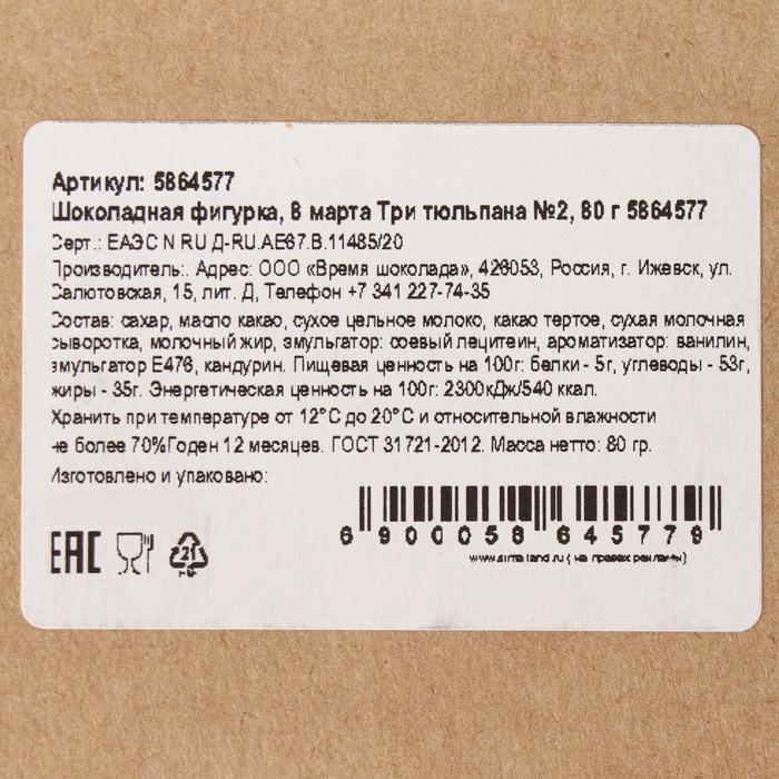 Бельгийский шоколад «8 марта. Три тюльпана», 80 г 3 фото