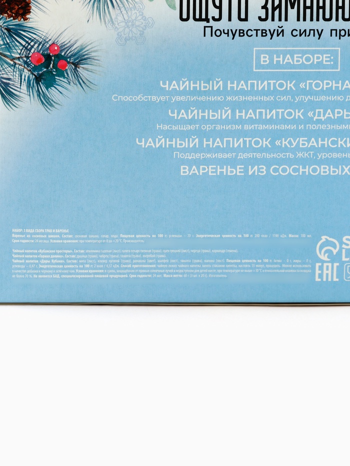 Подарочный набор новогодний «Тайны матушки зимы»: сбор трав 3 шт. × 20 г, варенье из сосновых шишек, 100 мл. 8 фото