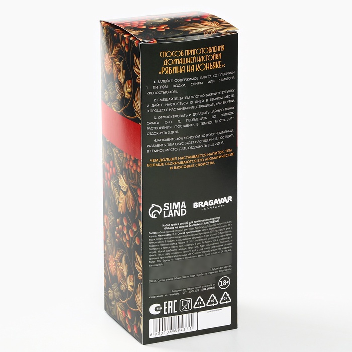 Подарочный набор для приготовления настойки «Рябина на коньяке», набор трав и специй 74 г, бутылка 500 мл., инструкция 10 фото