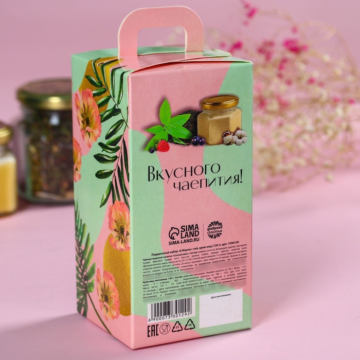 Подарочный набор «8 марта»: чай, крем-мед (120 г) 5 фото