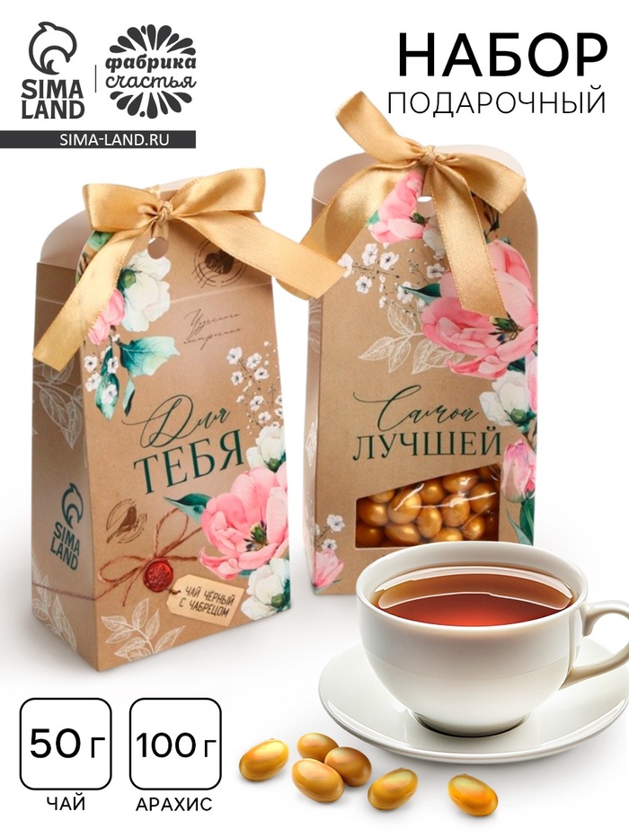 Подарочный набор «Самой лучшей»: чай, арахис в шоколадной глазури 6 фото
