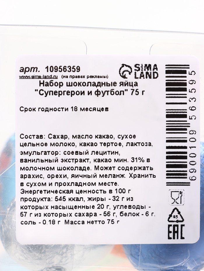 Яйца шоколадные «Супергерои и футбол», набор, 75 г 4 фото