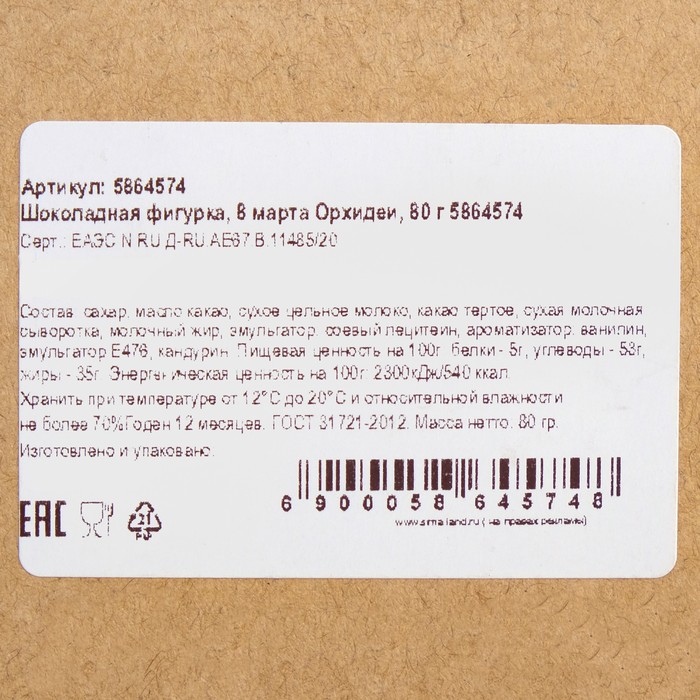 Бельгийский шоколад, «8 марта. Нарциссы», 80 г 4 фото