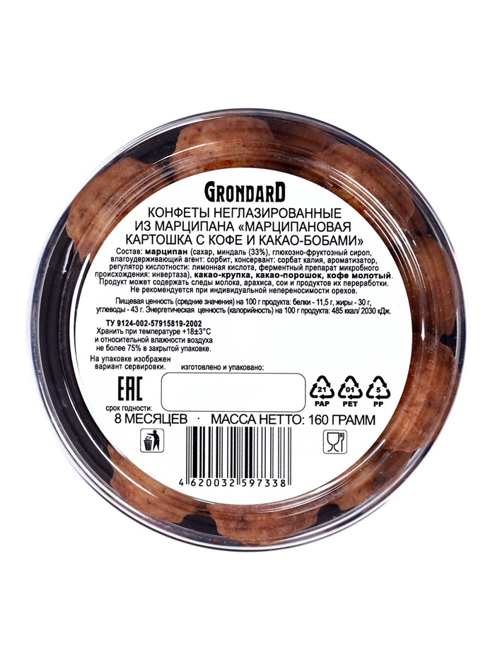 Картошка марципановая с кофе и какао-бобами, неглазированная, 160 г 3 фото