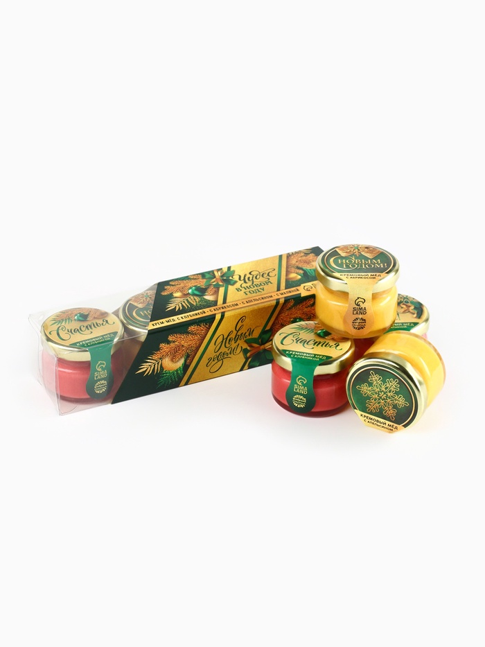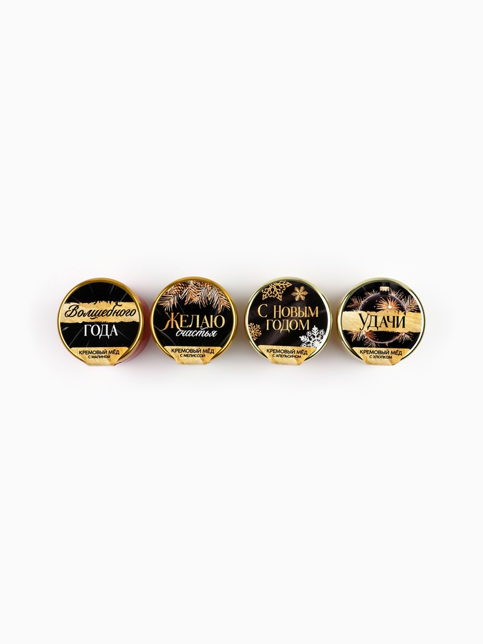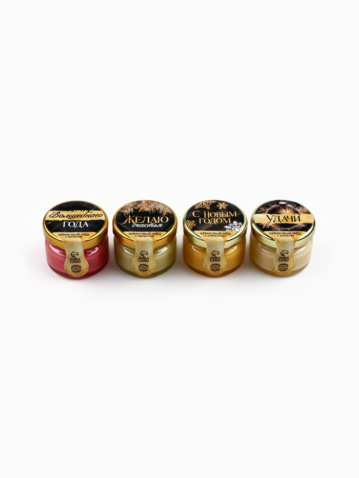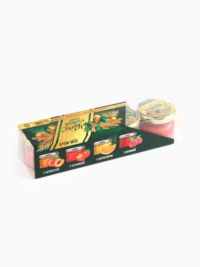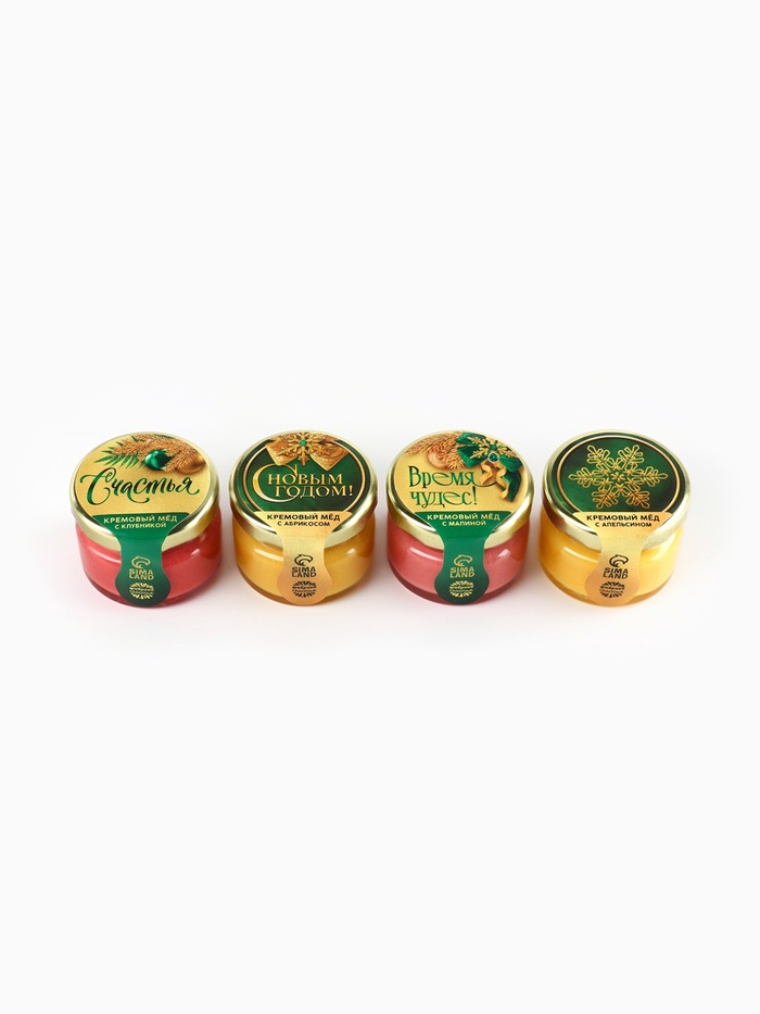 Мёд кремовый новогодний «Чудес», клубника, абрикос, апельсин, малина, 120 г (набор 4 шт.×30 г). 10 фото