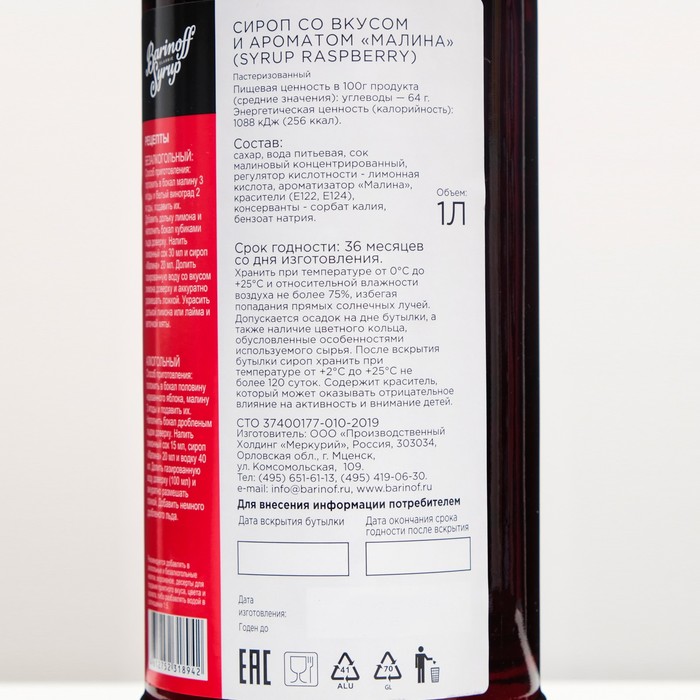 Сироп Barinoff «Гренадин», 1 л 2 фото