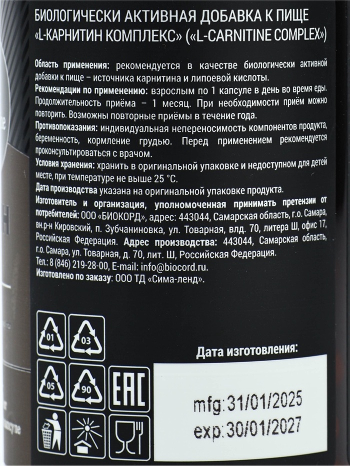 L - карнитин жиросжигатель спортивный, для похудения, 60 капсул 6 фото