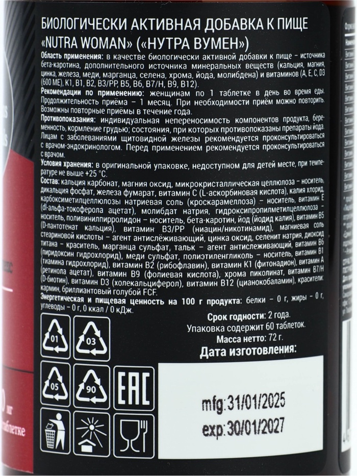 Витамины женские, укрепление иммунитета, мультивитамины, 60 таблеток 6 фото