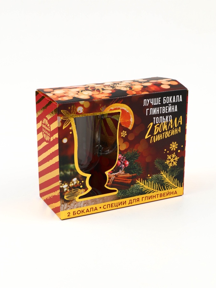 Подарочный набор новогодний для приготовления глинтвейна «Лучше глинтвейна»: специи 30 г, бокалы 250 мл, 2 шт. 8 фото