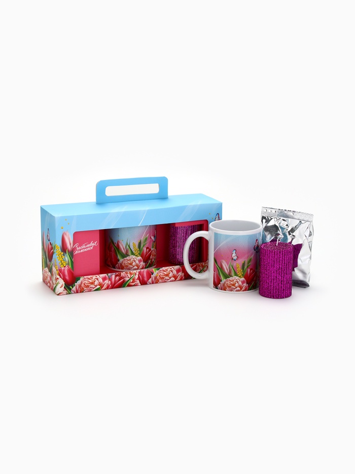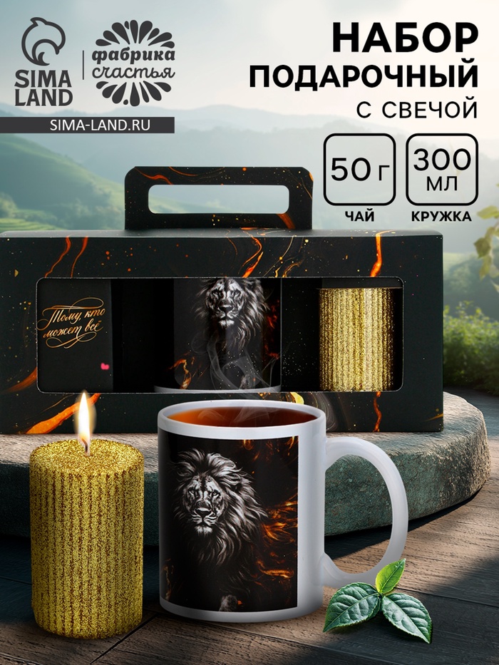 Подарочный набор: чай 50 г, кружка, свеча «Счастливых моментов» 10 фото