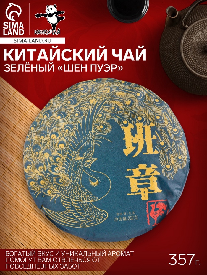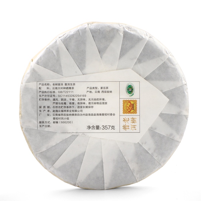 Чай зелёный китайский «Шен Пуэр. Вековое Дерево», Мэнхай, 2020 г, блин, 357 г 3 фото
