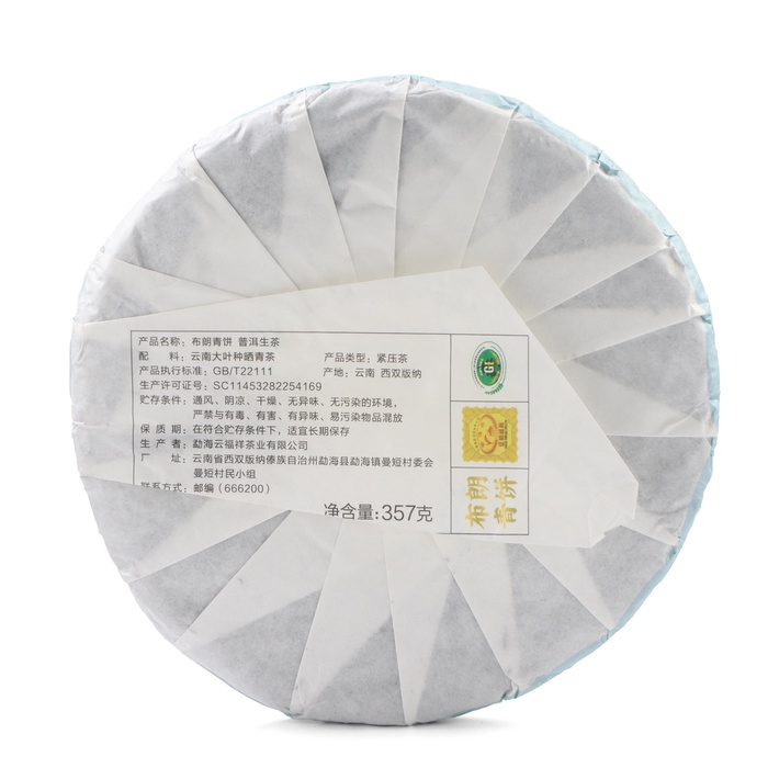 Чай зелёный китайский «Шен Пуэр. Зелёный Булан», Мэнхай, 2020 г, блин, 357 г 3 фото