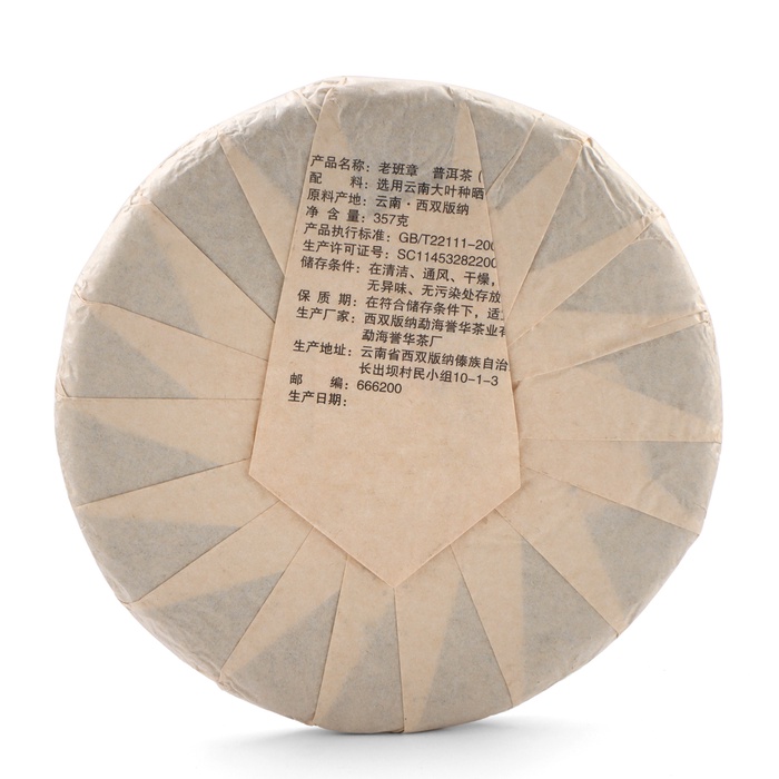 Чай зелёный китайский выдержанный «Шен Пуэр. Laobanzhang», Юньнань, 2008 г, блин, 357 г