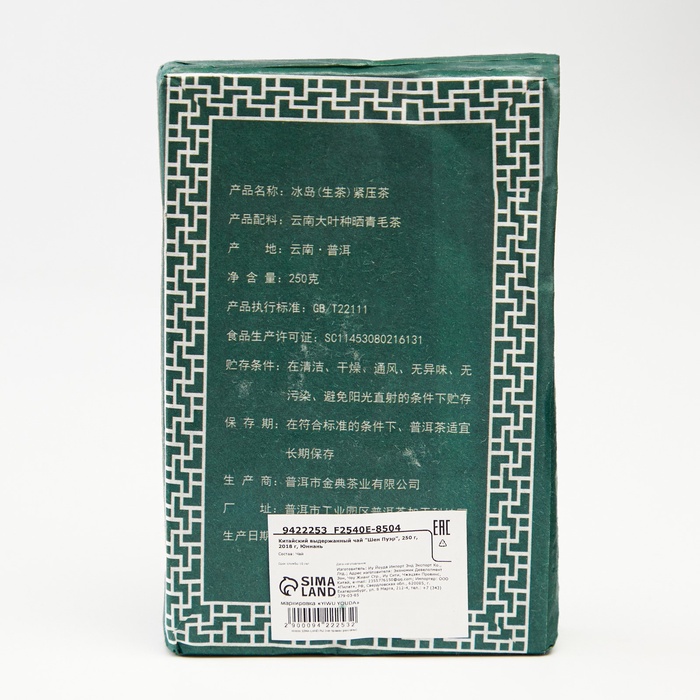 Чай зелёный китайский выдержанный «Шен Пуэр», Менхай, 2017 г, кирпич, 357 г 3 фото