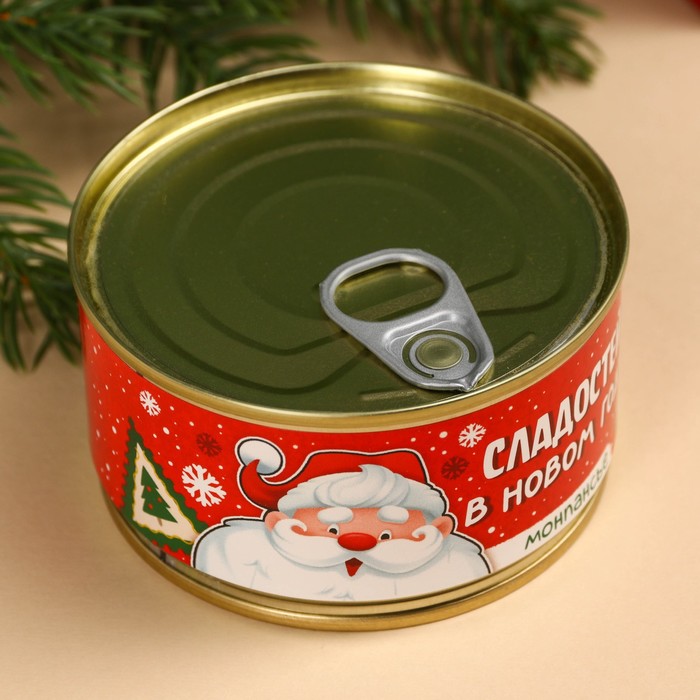 Леденцы монпансье новогодние в консервной банке «Консервированный и классический НГ», 6 шт. × 100 г 4 фото