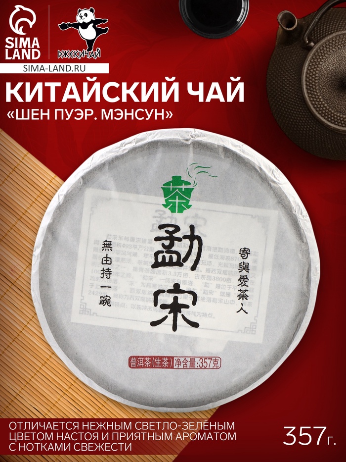 Чай зелёный китайский «Шен Пуэр Мэнсун», Мэнхай, 2022 г, блин, 357 г 3 фото