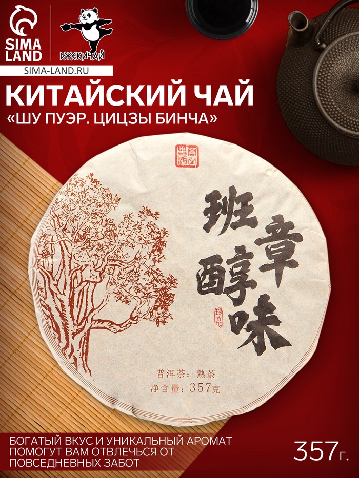 Чай чёрный китайский выдержанный «Шу Пуэр. Цицзы бинча», Юньнань, 2018 г, блин, 357 г 2 фото