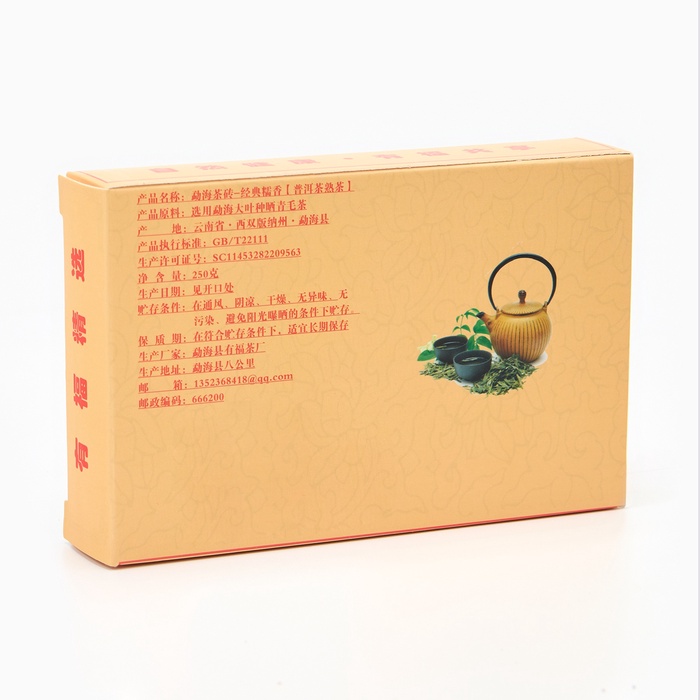 Чай чёрный китайский выдержанный «Шу Пуэр Мэнхай Но Ми Сян», Юньнань, 2016 г, кирпич, 250 г 3 фото