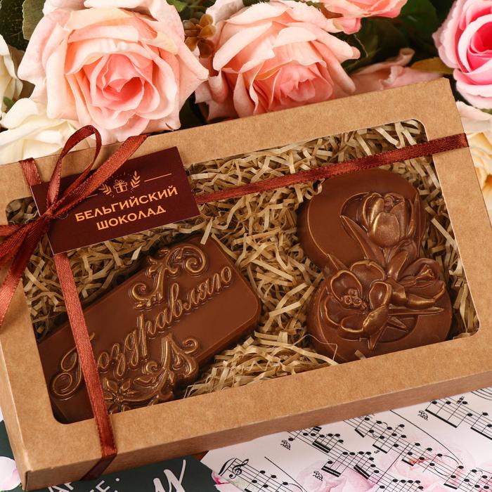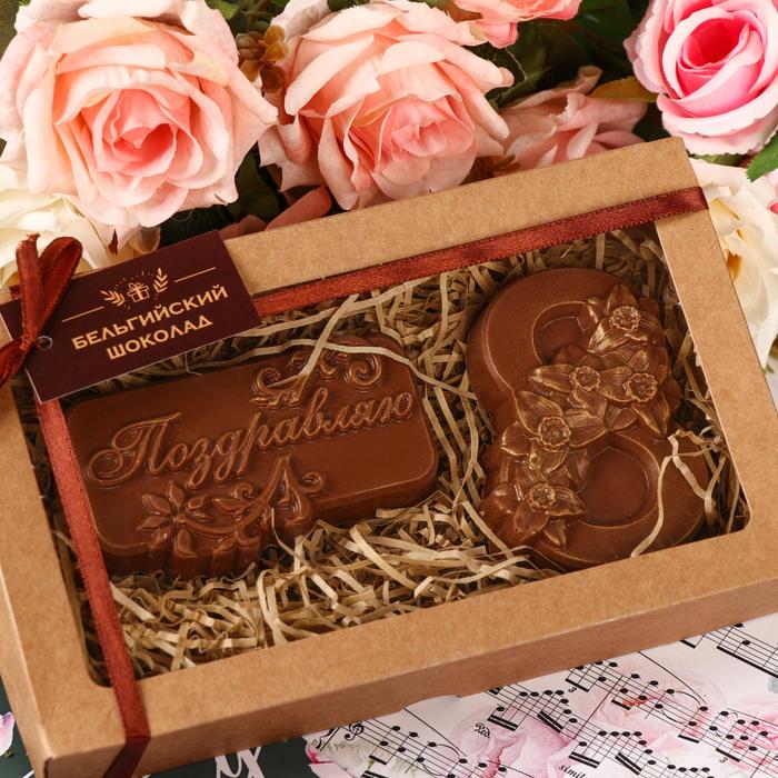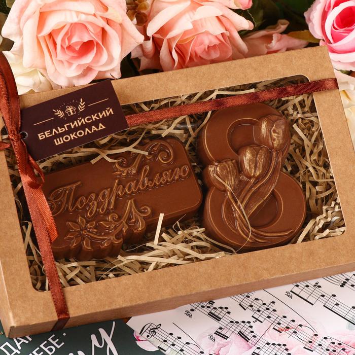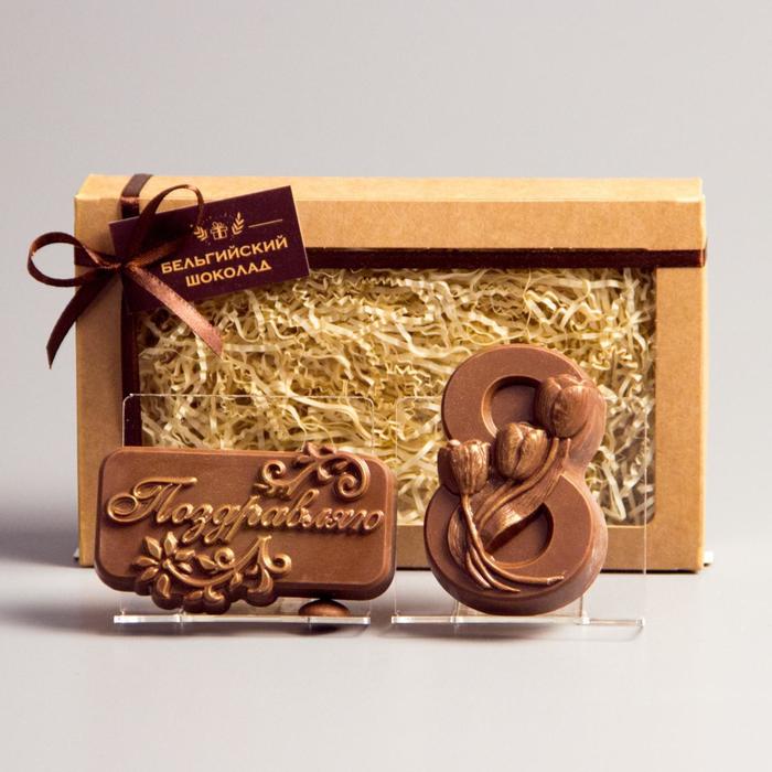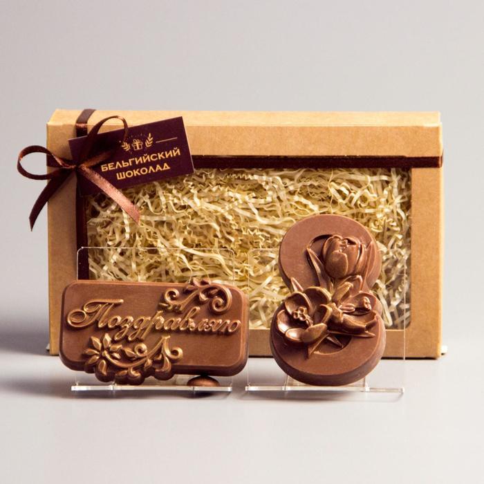 Бельгийский шоколад, 2 в 1 «Поздравляю + Восьмёрка и тюльпаны», 160 г 3 фото