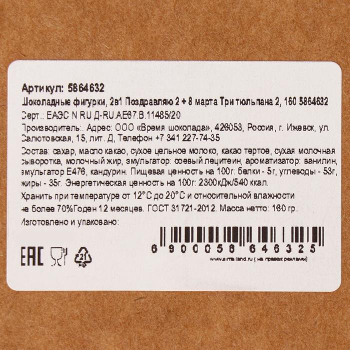 Бельгийский шоколад, 2 в 1 «Поздравляю + 8 марта. Три тюльпана», 160 г 3 фото