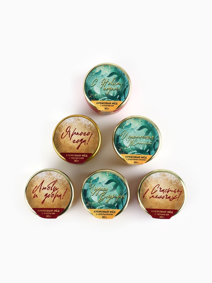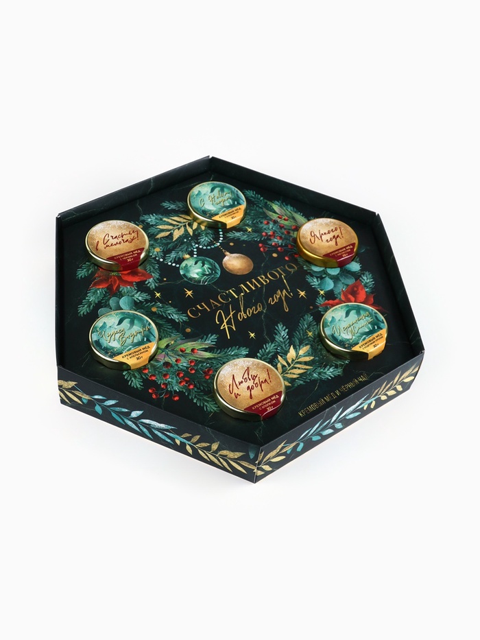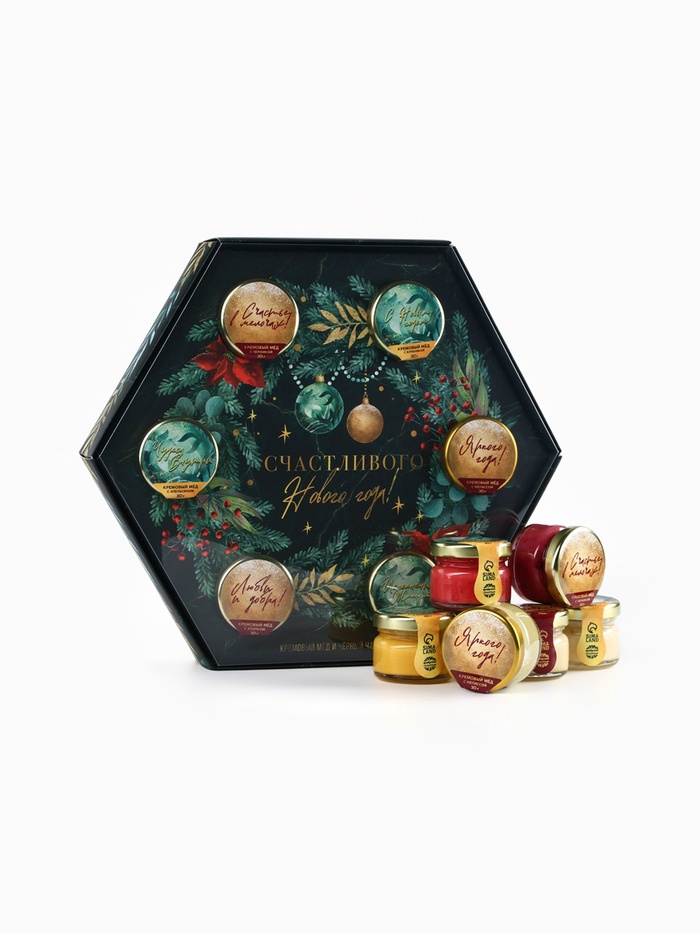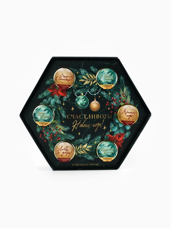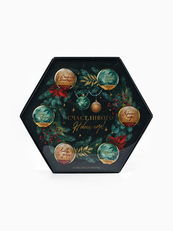 Подарочный набор новогодний «Счастливого Нового года»: чай чёрный, крем-мёд (6 шт.x30 г) 10 фото