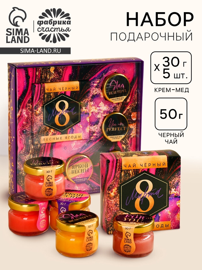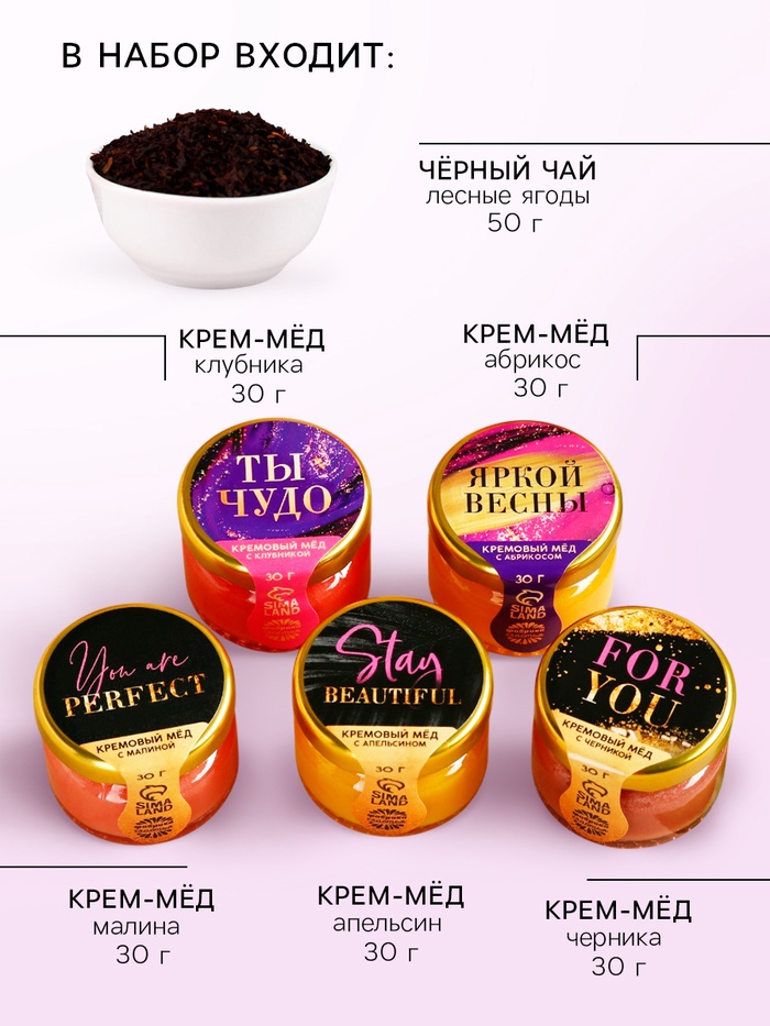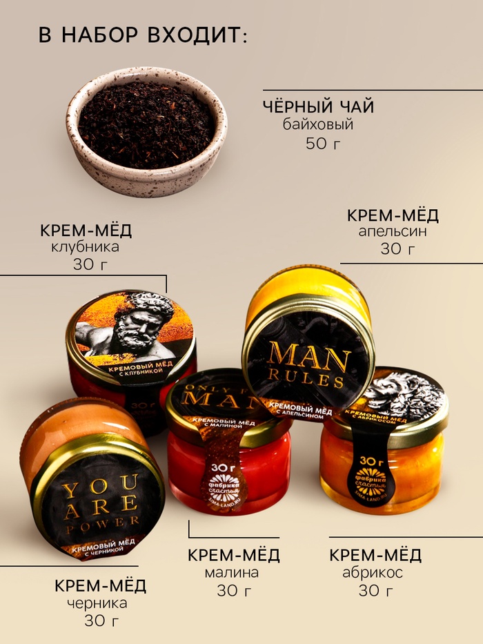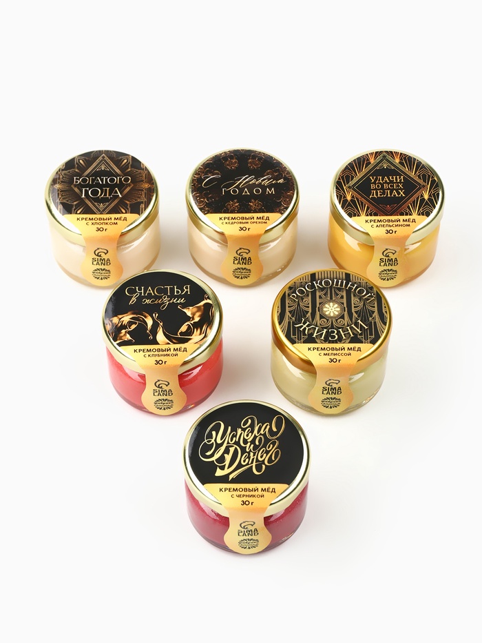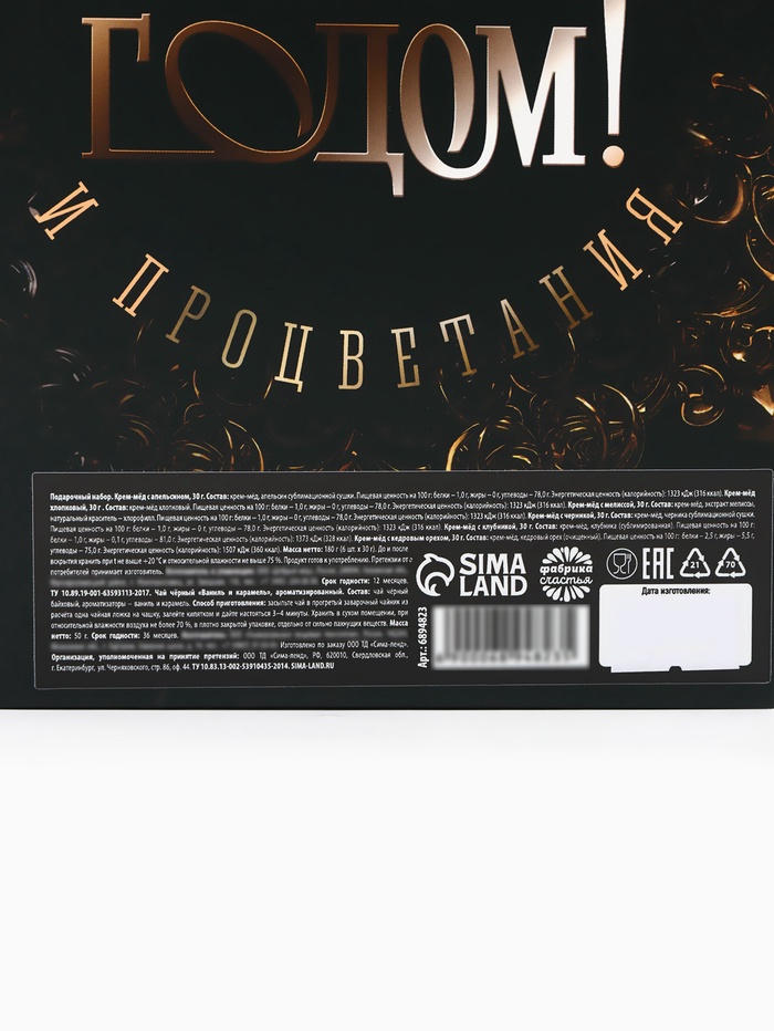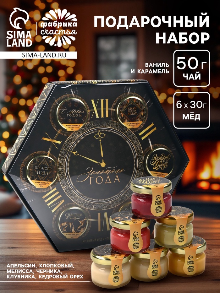 Подарочный набор новогодний «Счастливого Нового года»: чай чёрный, крем-мёд (6 шт.x30 г) 10 фото