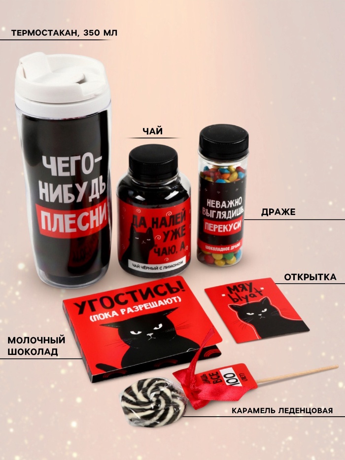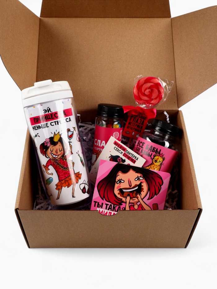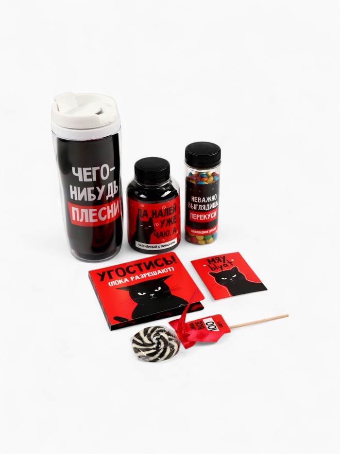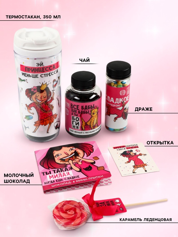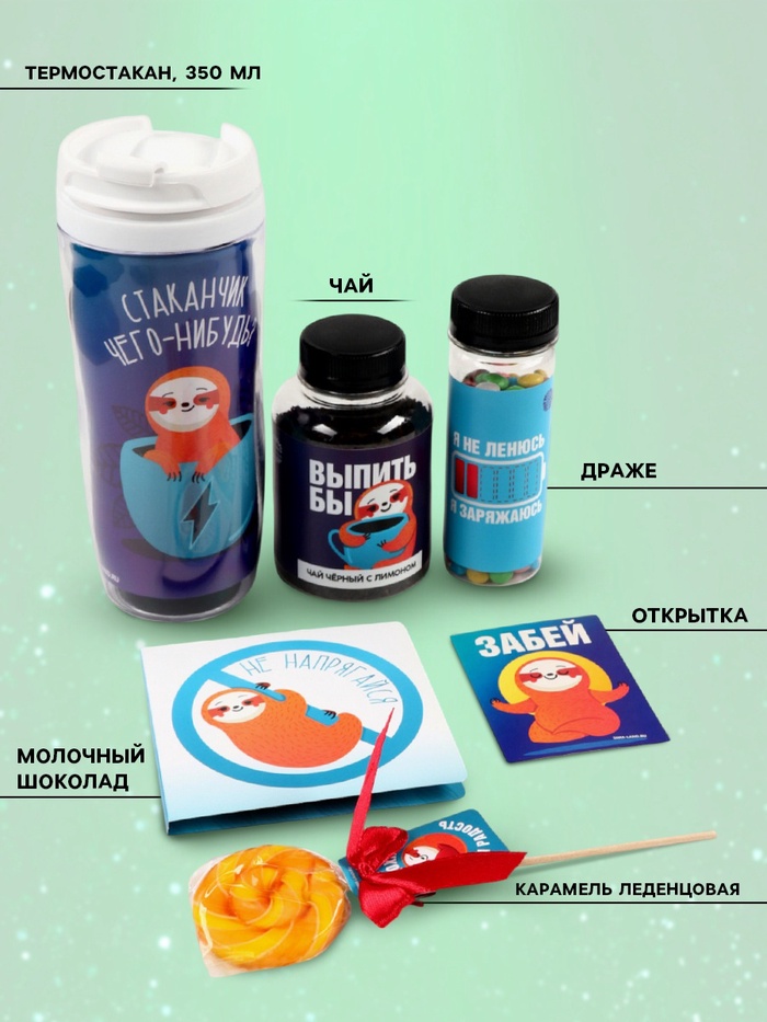 Набор «Пофигин»: чай, драже, шоколад, термостакан, леденец 10 фото