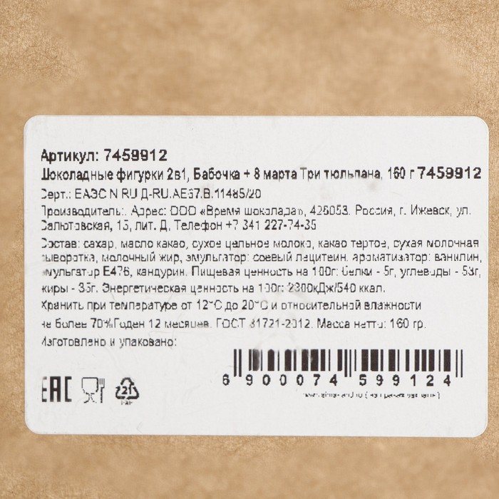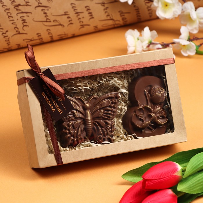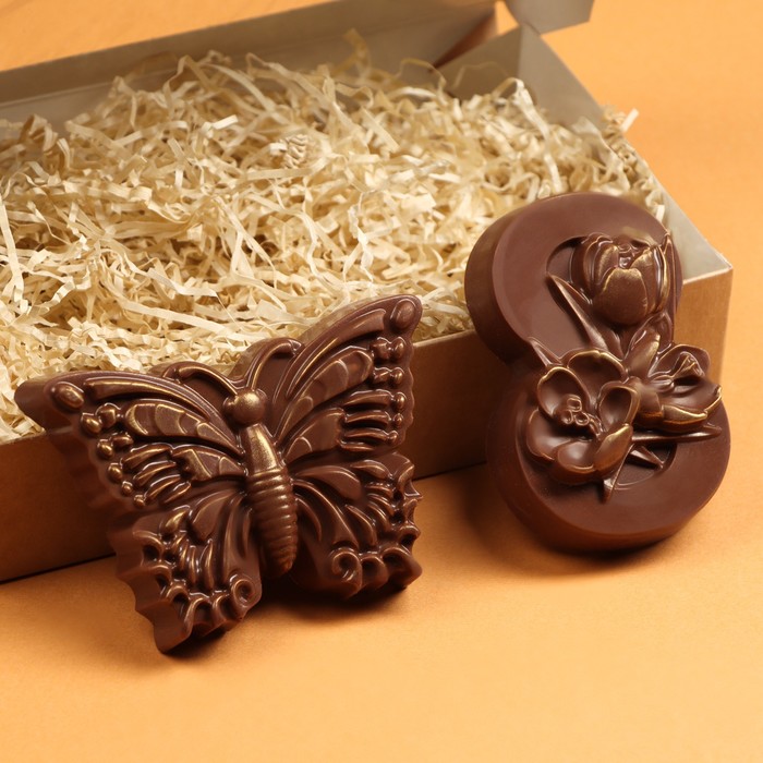 Шоколадные фигурки, 2 в 1 «Бабочка + 8 марта. Три тюльпана», 160 г 3 фото
