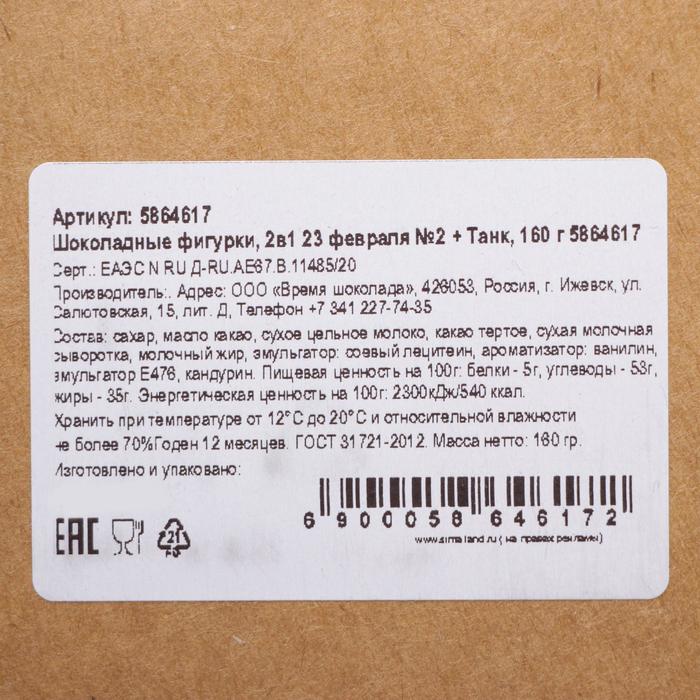 Бельгийский шоколад, 2 в 1 «23 февраля №2 + Танк», 160 г 3 фото