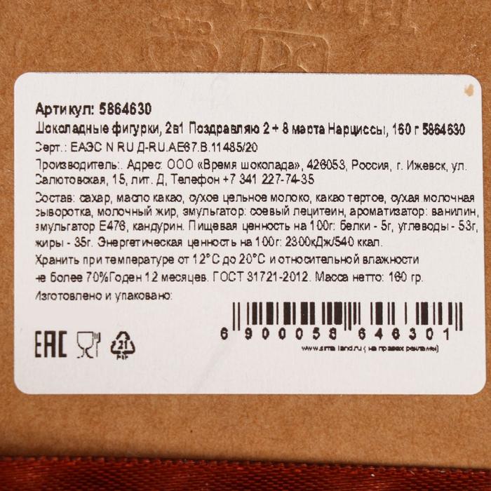 Бельгийский шоколад, 2 в 1 «Поздравляю + Восьмёрка и нарциссы», 160 г 3 фото