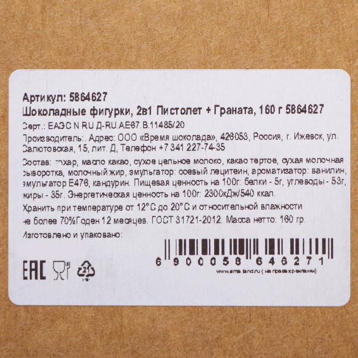 Бельгийский шоколад, 2 в 1 «23 февраля №2 + Пистолет», 160 г 3 фото