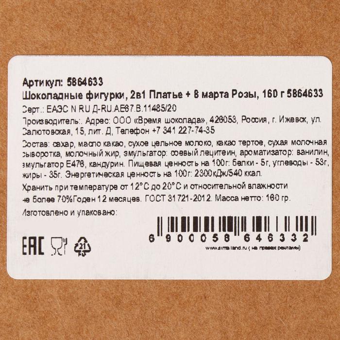 Бельгийский шоколад, 2 в 1 «Платье + 8 марта. Розы», 160 г 3 фото
