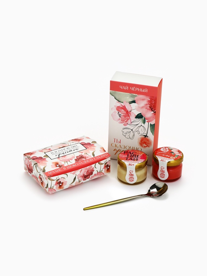 Подарочный набор «Цветочный», чай, кофе молотый, сладости 10 фото